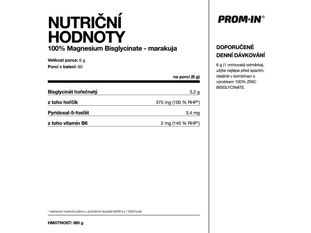 Marakuja: 6 g (odpovídá přibližně 1 odměrce), užijte nejlépe před spaním, ideálně v kombinaci s výrobkem 100% ZINC BISGLYCINATE.