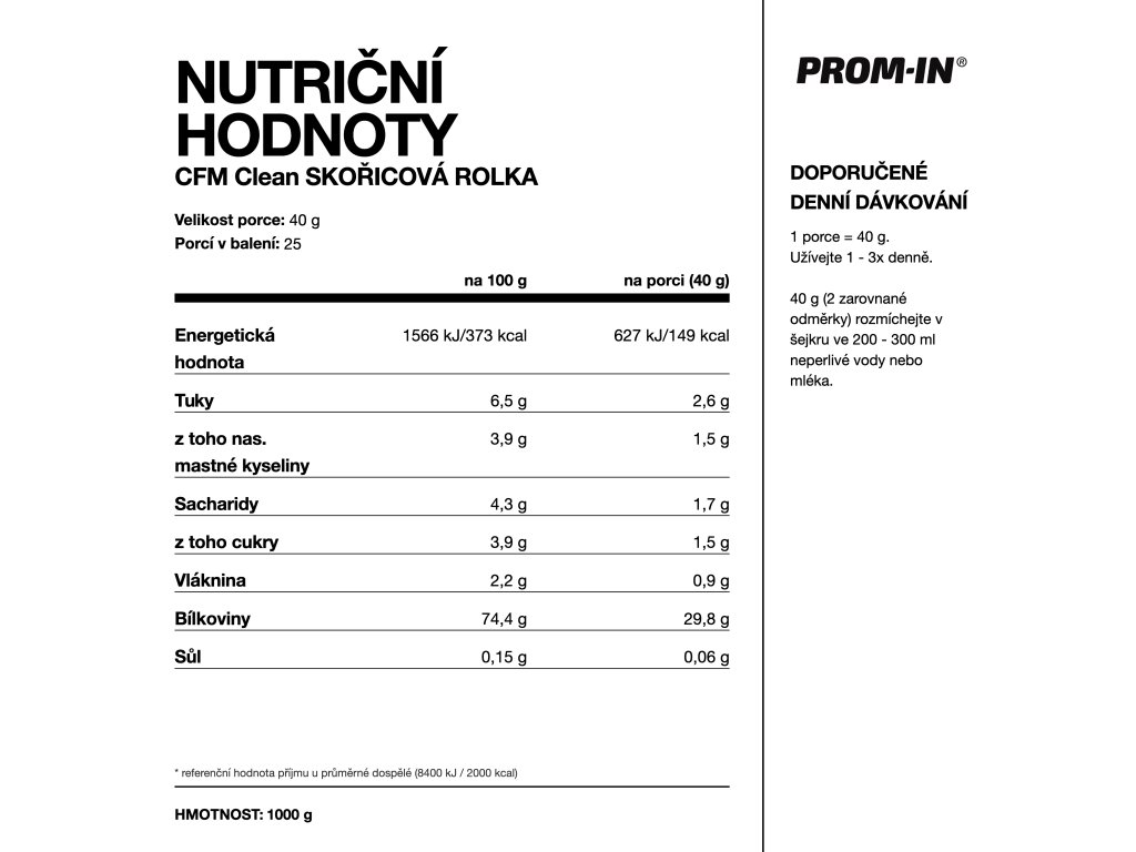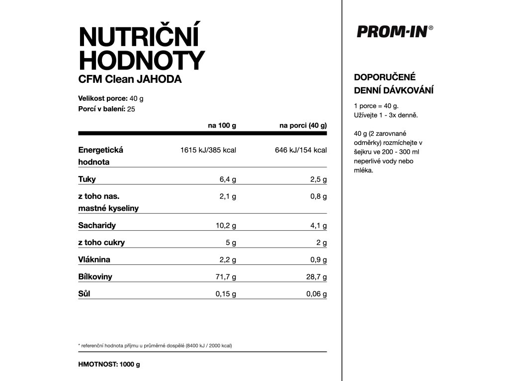 Syrovátkový protein CFM CLEAN, PROM-IN® je navržený pro ty, kteří hledají maximální čistotu, funkčnost a transparentnost.