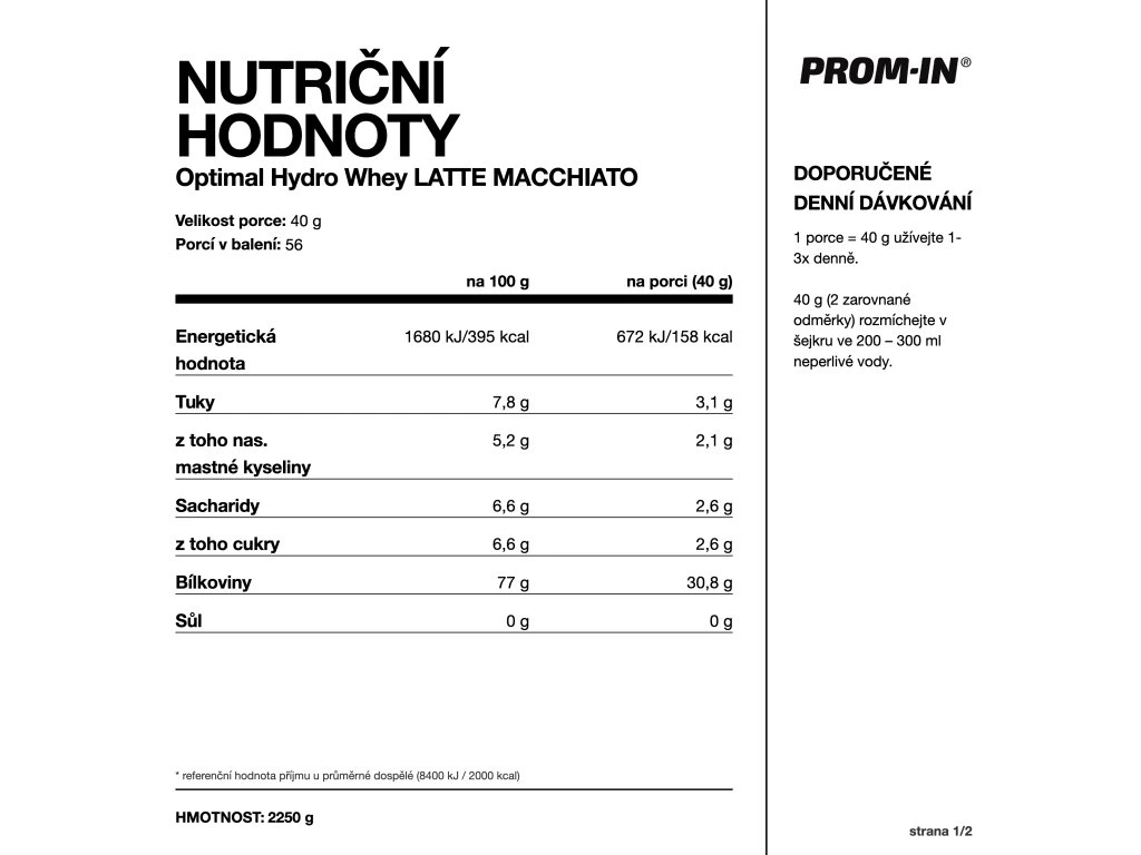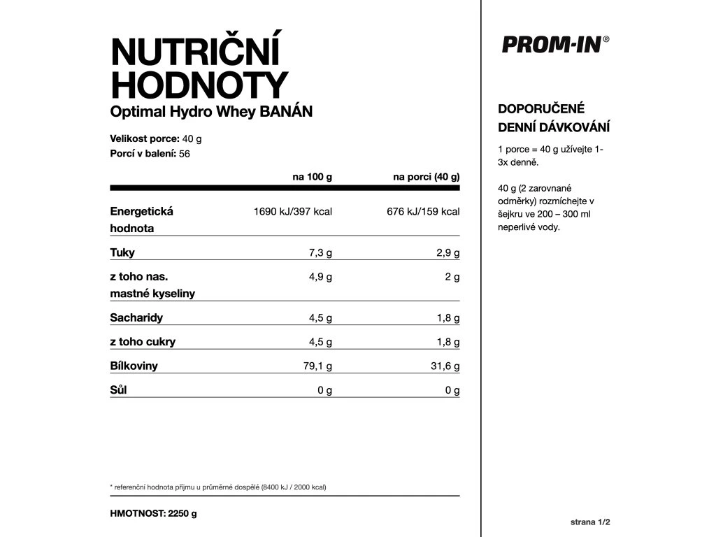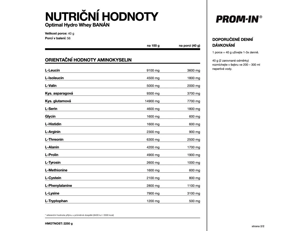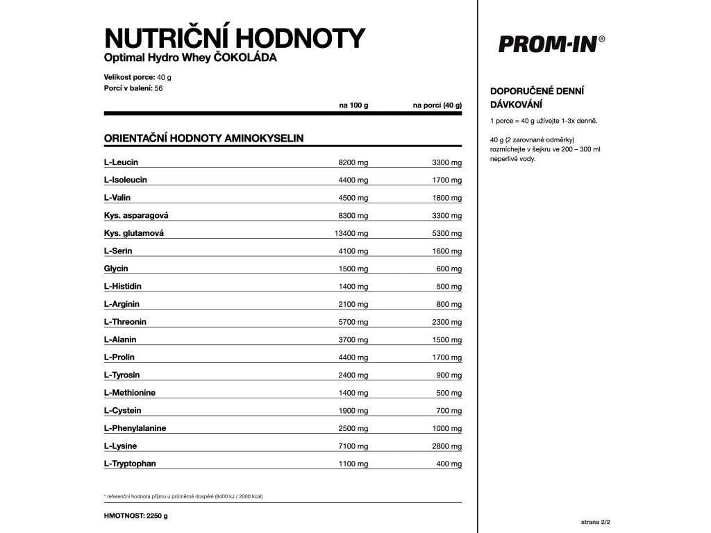 Balení 2250 g obsahuje 56 porcí.
