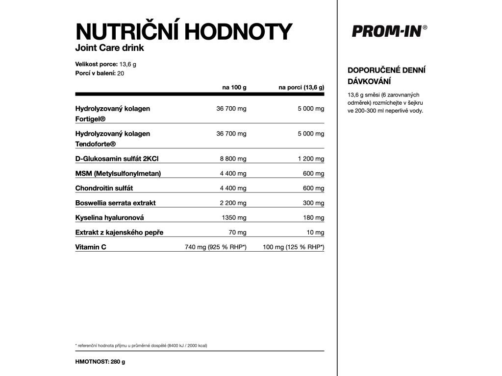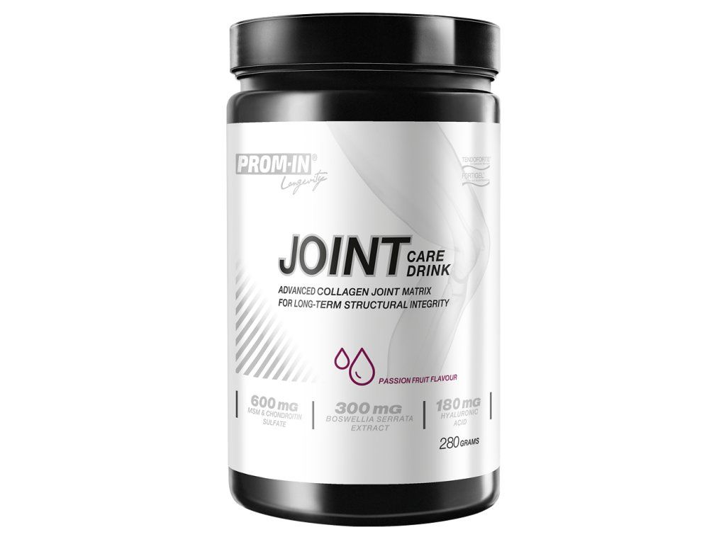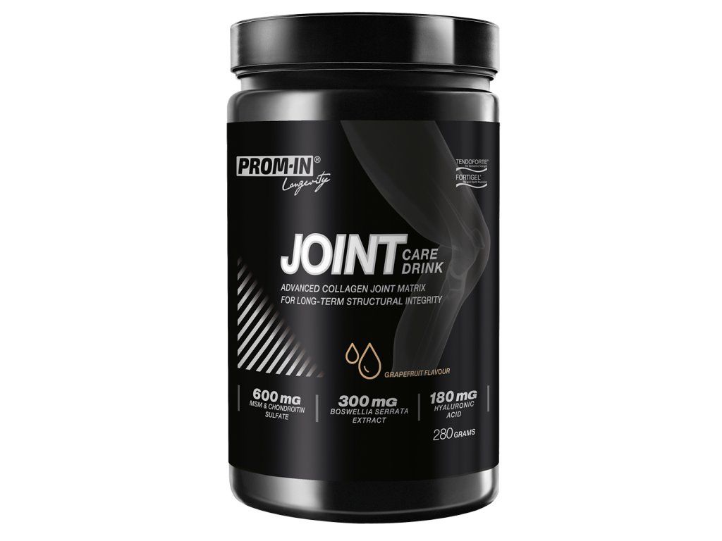 PROM-IN® JOINT CARE DRINK kombinuje klinicky studované kolagenní peptidy FORTIGEL® a TENDOFORTE® s komplexem látek používaných ve výživě pohybového aparátu.