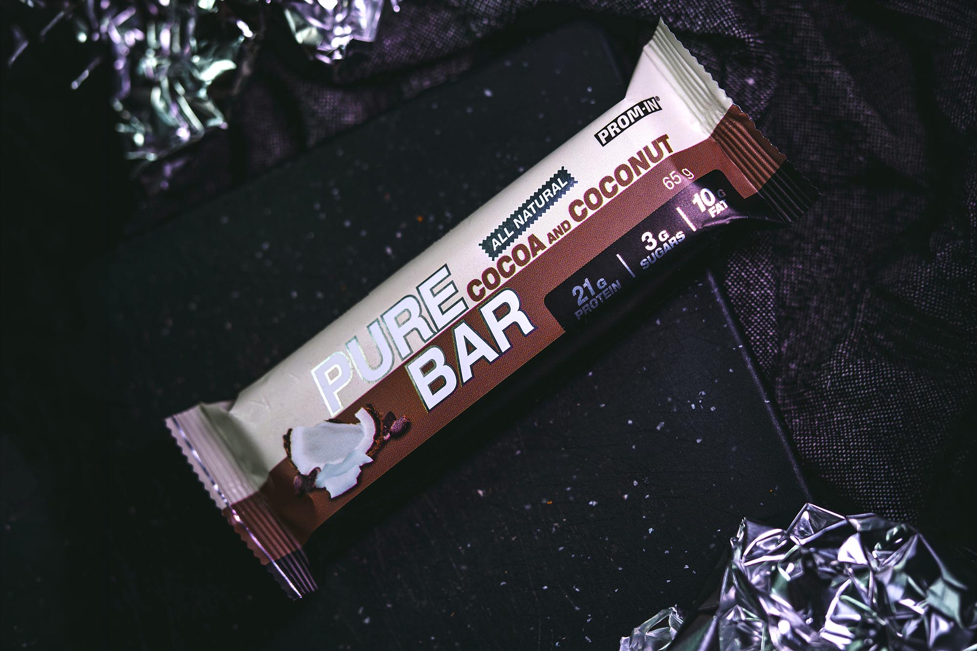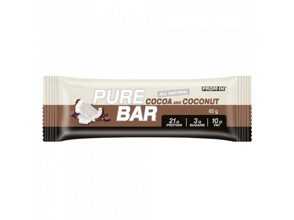 PURE BAR, PROM-IN® není candy tyčinka plná syntetických barviv a agresivní chemie. Naopak její chuť vytvářejí skutečné suroviny jako kakao, mandle, nesířený kokos a mléčné bílkoviny.