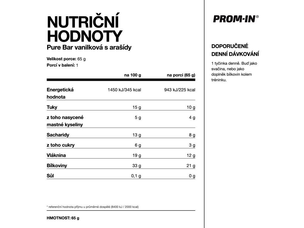 PURE BAR, PROM-IN® je navržena jako rychlá a nutričně vyvážená potravina. Díky nekompromisnímu složení a důrazu na výběr surovin najde uplatnění především v dietních režimech, kdy hledáte kvalitní bílkoviny a současně produkt, který je složením blíž reálné potravině než „proteinové cukrovince“.