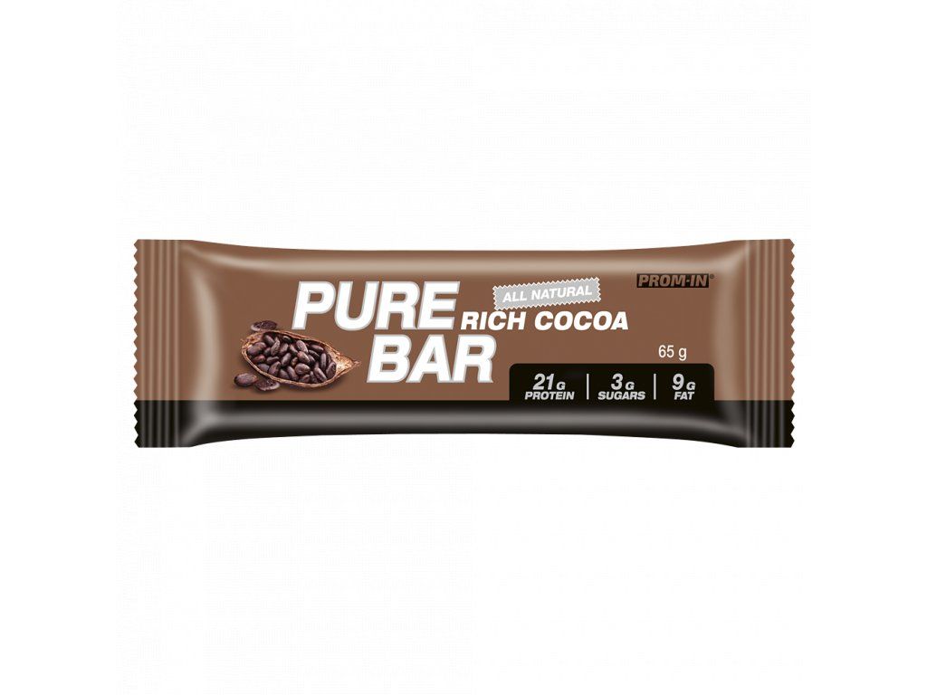 PURE BAR, PROM-IN® obsahuje bílkoviny pouze z CFM syrovátkového proteinu a micelárního kaseinu, vláknina PROMITOR®, tuky z mandlí a kakaa — přirozená chuť bez aditiv.